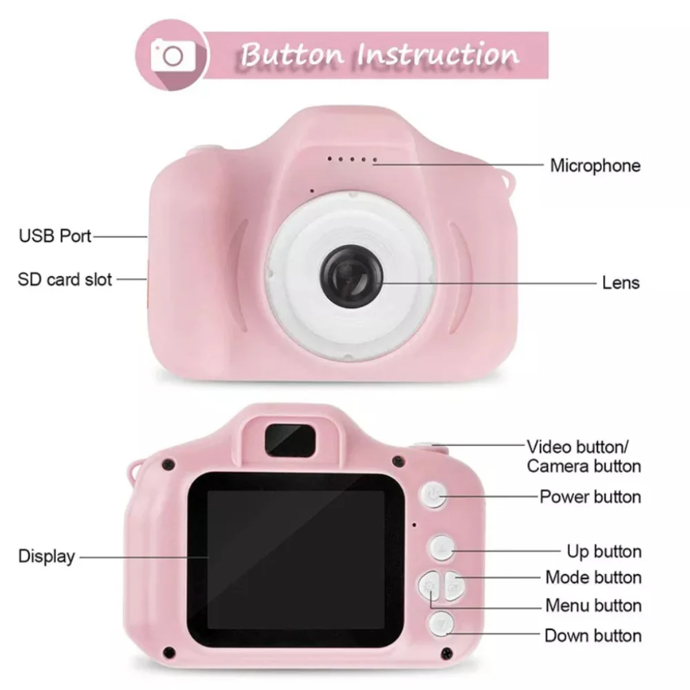 Cameră foto și video digitală pentru copii, destinată realizării fotografiilor și înregistrării videoclipurilor. Dispozitivul este prevăzut cu ecran integrat și funcții de bază pentru utilizare facilă.