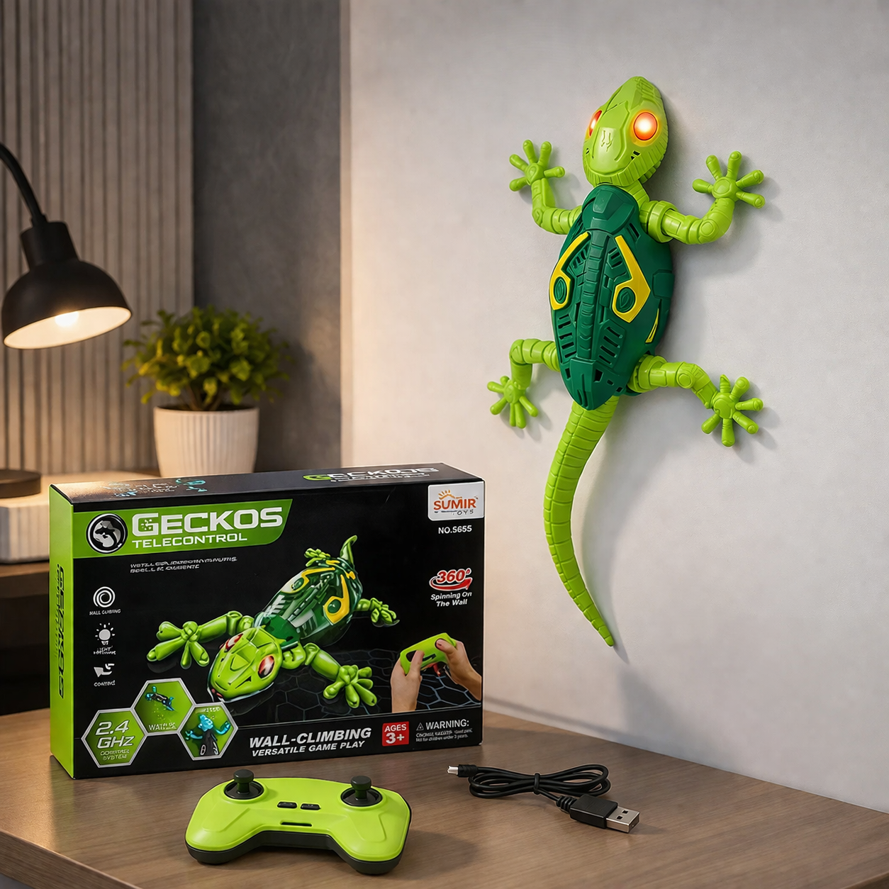 Jucărie tip șopârlă cu telecomandă, deplasare pe perete și podea