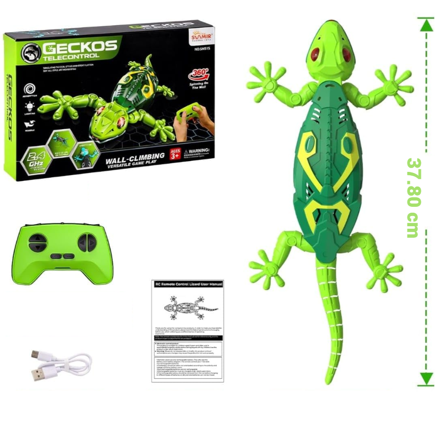 Această jucărie tip soparla cu telecomandă este proiectată pentru deplasare atât pe suprafețe orizontale, cât și pe suprafețe verticale netede. Sistemul intern permite schimbarea direcției și controlul precis al mișcării, prin intermediul telecomenzii.
