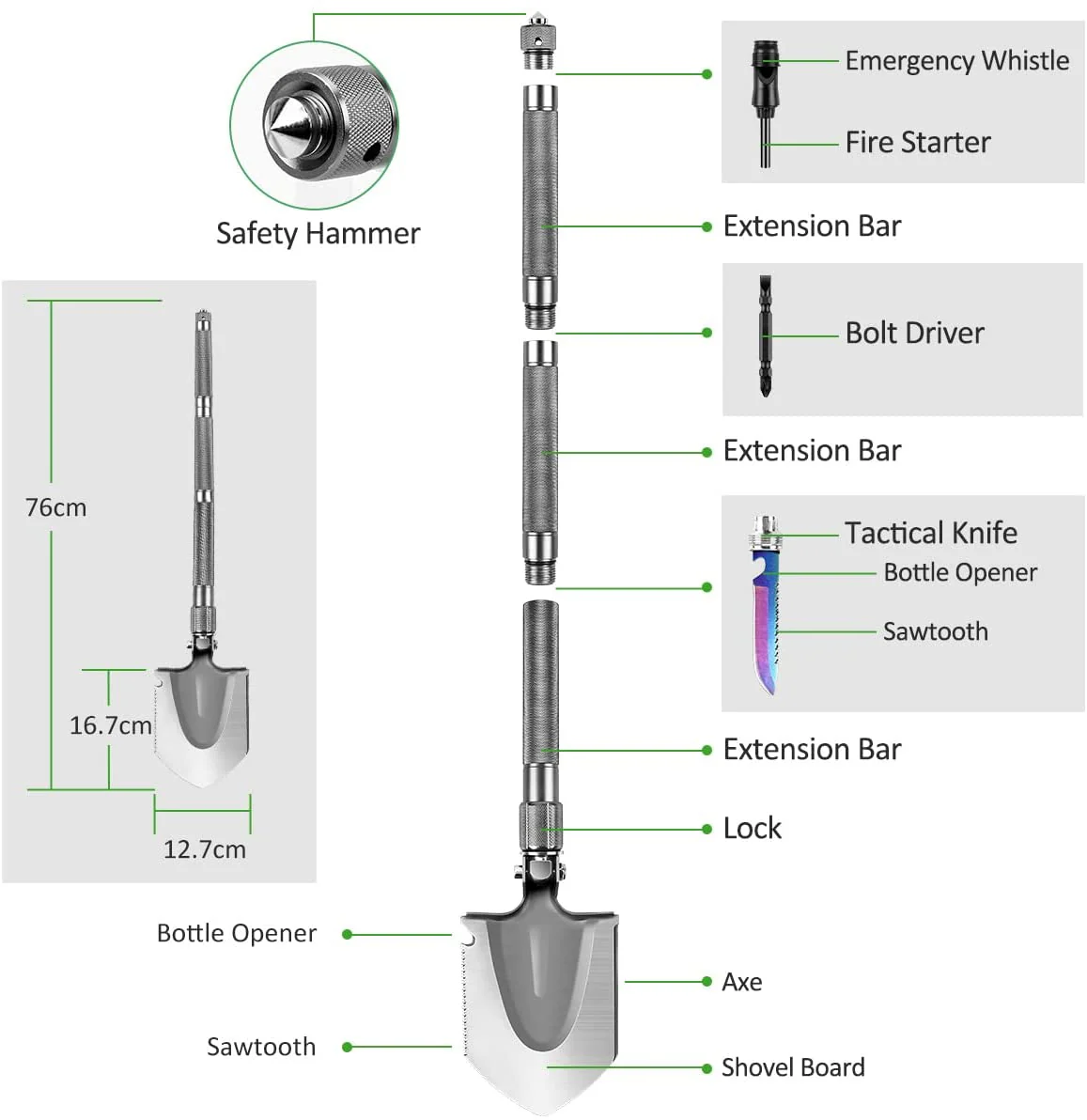 - 1 x lopată multifuncțională