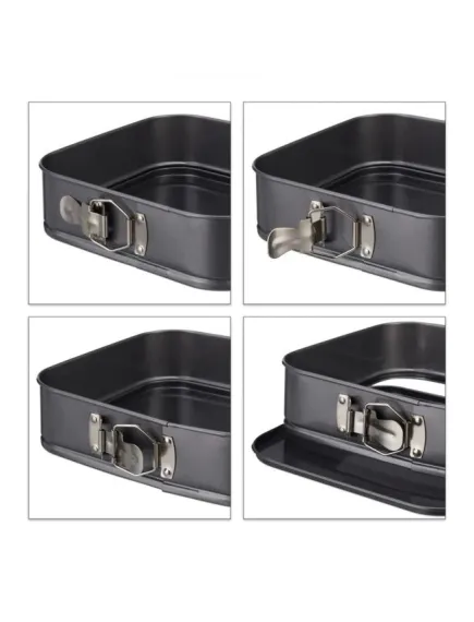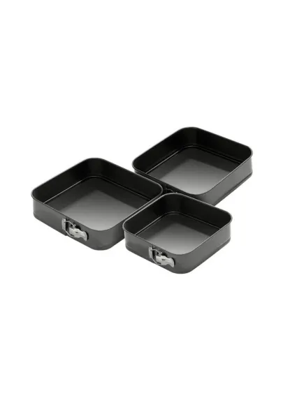 Setul de 3 tăvi teflonate în formă pătrată este ideal pentru prepararea prăjiturilor și torturilor de diferite dimensiuni. Fiecare tavă este prevăzută cu bază detașabilă și pereți laterali cu sistem de deschidere, pentru o îndepărtare ușoară a deserturilor și păstrarea formei perfecte.