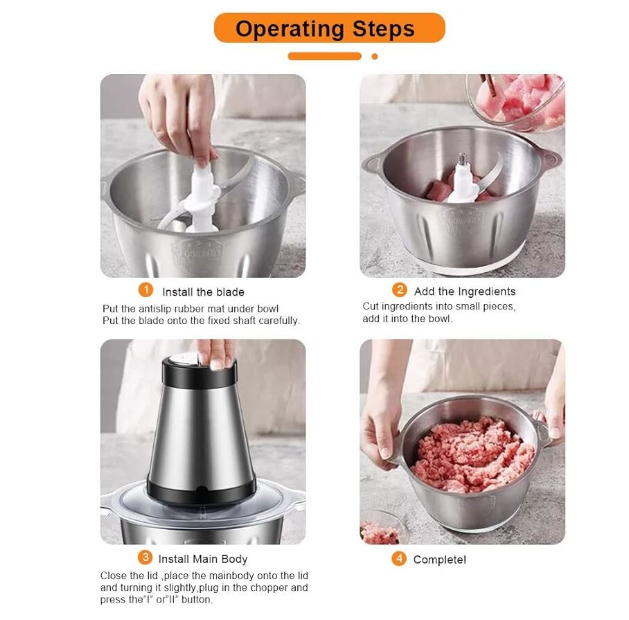 Tocatorul electric este un aparat practic pentru bucătărie, potrivit pentru mărunțirea legumelor, fructelor, nucilor, cărnii sau altor alimente. Datorită lamelor din oțel inoxidabil și recipientului din inox, oferă o utilizare durabilă și ușor de curățat.