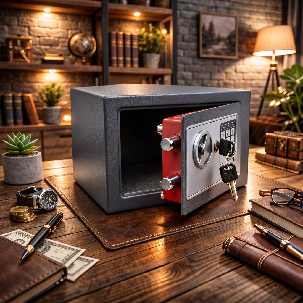 Protejați documentele importante, banii sau obiectele de valoare cu acest seif electronic compact, potrivit pentru utilizare acasă sau la birou.